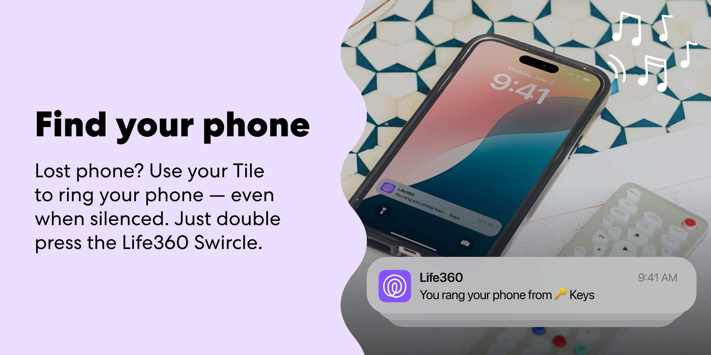 - FIND YOUR PHONE: Phone hiding under a cushion? Use your Tile to make it ring — even when silenced