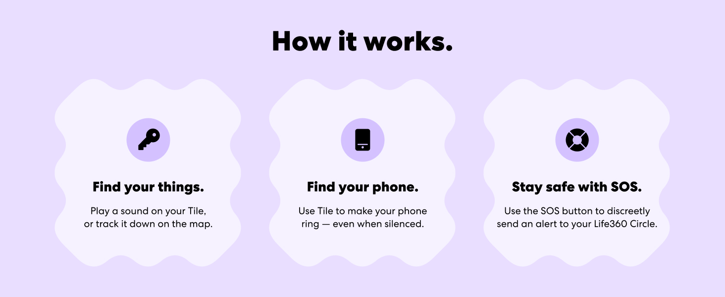 Tile is the only Bluetooth tracker with a built-in SOS button. Discreetly trigger an SOS alert to your Life360 Circle in unsafe situations.