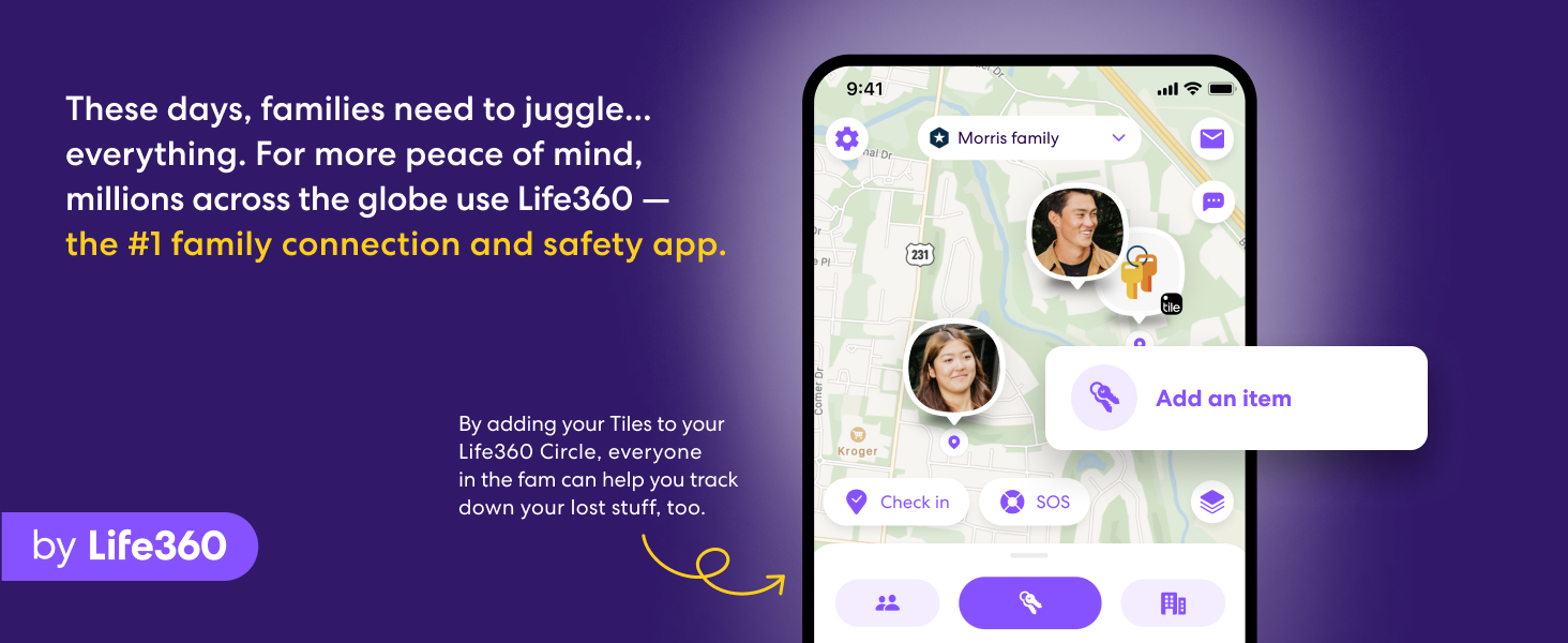 • USE WITH LIFE360: Add your Tiles to Life360 — a top family connection and safety app – to see everything and everyone on the same map